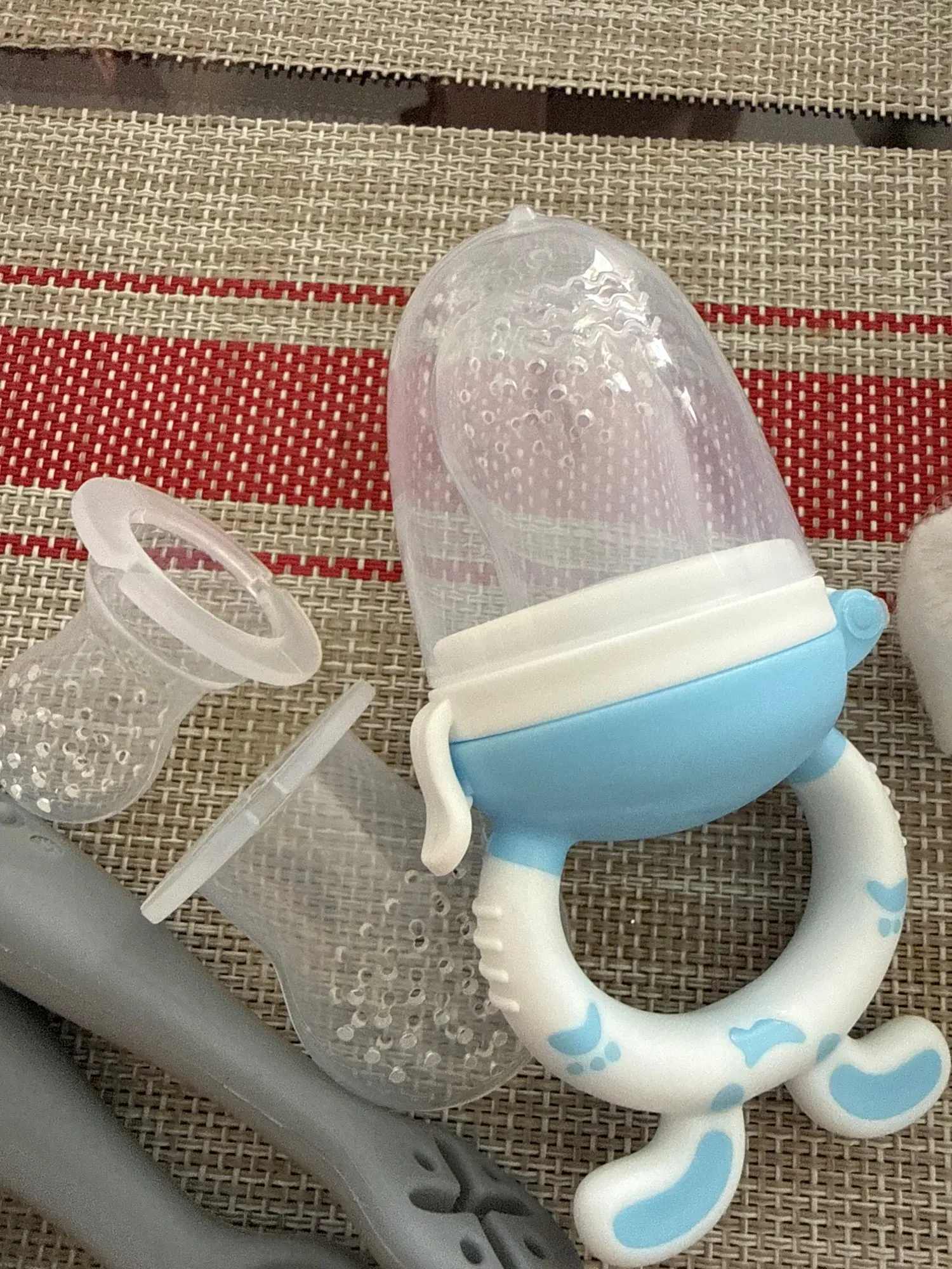 Design: 3-in-1 fruit feeder, milk bottle, and pacifier nibbler